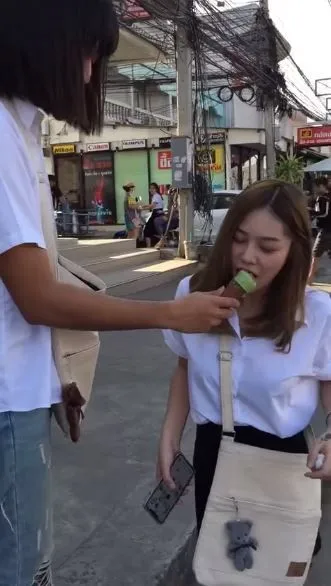 โดยคลิปดังกล่าว มีข้อความบรรยายว่า “มีไผเคยแกล้งแฟนตัวเองแบบนี้บ่