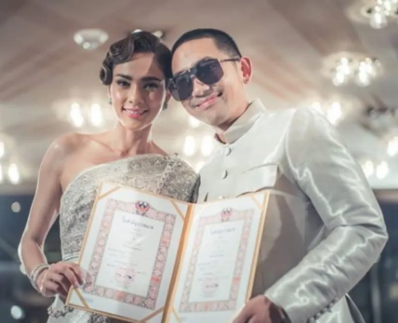 ได้จัดงานแต่งงานเมื่อวันที่ 6 พฤษภาคม 2558 ณ โรงแรม เดอะ เพนนินซูล่า บางกอก กับธีม Rhythm Of Beautiful กับความสวยงามสไตล์ชมพู่ อารยา ภายในงานตกแต่งด้วยดอกไม้สีขาวสวยสะพรั่ง