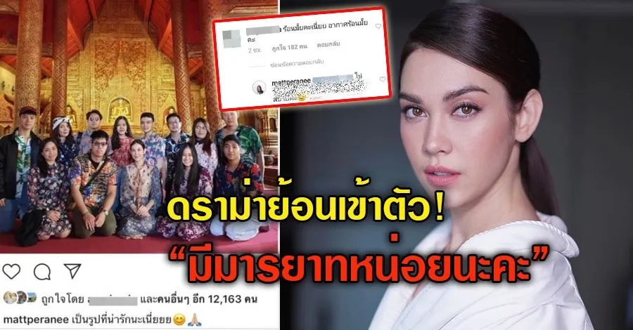 หลังจากที่เป็นกระแสวิภาควิจารณ์มานานโข ไม่จบไม่สิ้นและก็ยังไม่มีวี่แววว่าจะจบสิ้นกันง่ายๆในตอนนี้ แต่ก็มีเรื่องราวมาอัพเดตให้ฟังอยู่เรื่อยๆ คนปกป้องบ้าง ด่าบ้าง นู้นนั่นนี่สารพัด แต่เธอก็ยังทนได้ จนกระทั่งครั้งนี้มีคอมเมนต์นึงเชิงเหมือนจะเป็นคำถาม แต่ถามแบบนี้ก็เกินเหตุไป๊! สำหรับชาวเน็ตที่บุกไอจี สาวแมท ภีรณีย์ และยิงคำถามใต้ภาพที่สาวเจ้าและแก้งเพื่อนเข้าวัดไปทำบุญกัน หลังกลับจากทริปเที่ยวเชียงดาวว่า”เข้าวัดร้อนรึเปล่า”? แต่งวดนี้ คำตอบของภีรณีย์ แลดูซอร์ฟๆ เมื่อนางตอบกลับว่า”ไม่ร้อนค่ะ ตอนนี้สภาพอากาศกำลังเย็นสบาย”