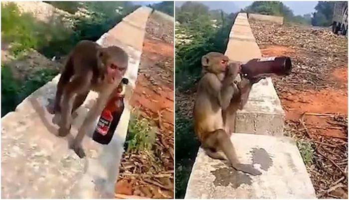 จากในคลิปจะเห็นว่า ลิงตัวหนึ่งกำลังนั่งอยู่บนกำแพงคอนกรีตและใช้สองมือและขาในการรองรับเบียร์ขวดใหญ่ ซึ่งคาดเดาวง่าน่าจะเป็นของนักท่องเที่ยวที่วางเอาไว้ จากนั้นมันก็เริ่มดื่มอย่างสบายอารมณ์ และดูเหมือนว่ามันจะแสดงอาการไม่พอใจ เมื่อพบว่าตัวเองกำลังจะถูกนักท่องเที่ยวยึดขวดเบียร์คืนอีกด้วย