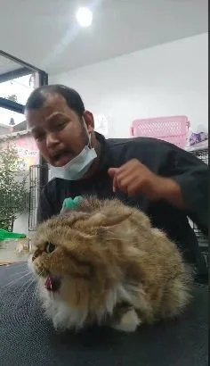 เรียกได้ว่าเป็นคลิปจากเฟซบุ๊ค "ท้อป ภาณุพงศ์ จงจิตร" ที่ในคลิปนั้นจะเก็นได้ว่าชายคนตัดอาบน้ำหมาแมวนั้นกำลังจะตัดขนว่าเจ้าเหมียวตัวนี้ หรือ น้องลูกจัน ไปอาบน้ำเพื่อจะมาตัดขน แต่แล้วคุยยังไงก็ไม่ได้ผล เมื่อน้องลูกจันนั้นขู่ตลอด ซึ่งคนตัดขนได้คุยเป็นภาษาใต้ว่า