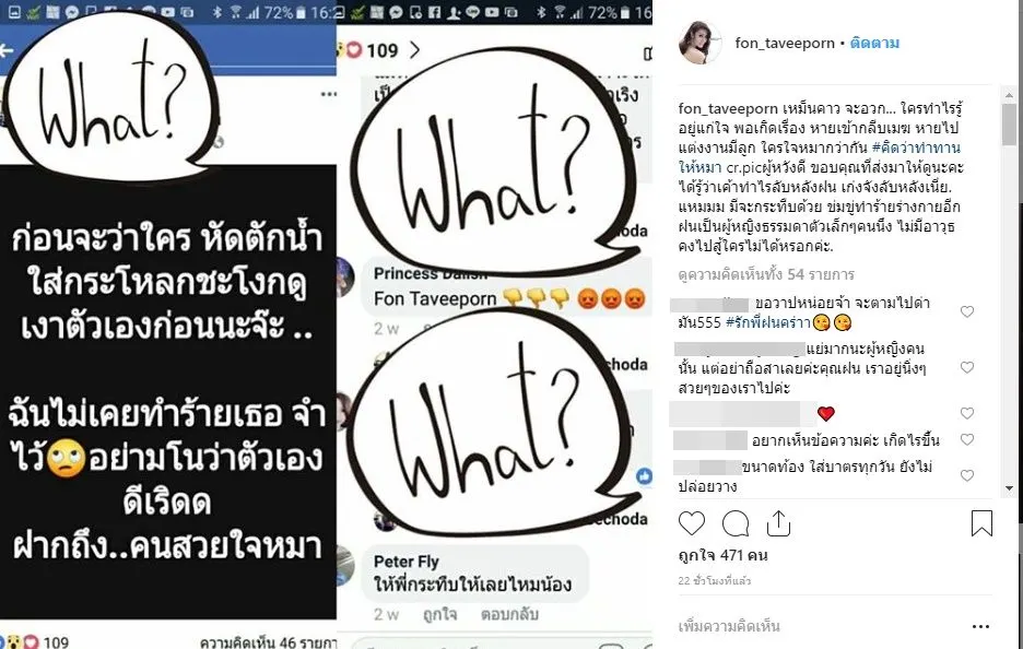 ใครใจหมากว่ากัน #คิดว่าทำทานให้หมา cr.pic ผู้หวังดี ขอบคุณที่ส่งมาให้ดูกันนะคะ ได้รู้ว่าเขาทำอะไรลับหลังฝน เก่งจังลับหลังเนี่ย แหมมมม มีจะกระทืบด้วย ข่มขู่ทำร้ายร่างกายอีก ฝนเป็นผู้หญิงธรรมดาตัวเล็กๆ คนนึง ไม่มีอาวุธ คงไปสู้ใครไมได้หรอกค่ะ” ศึกนี้จะยาวมั้ย เดี๋ยวรู้กัน