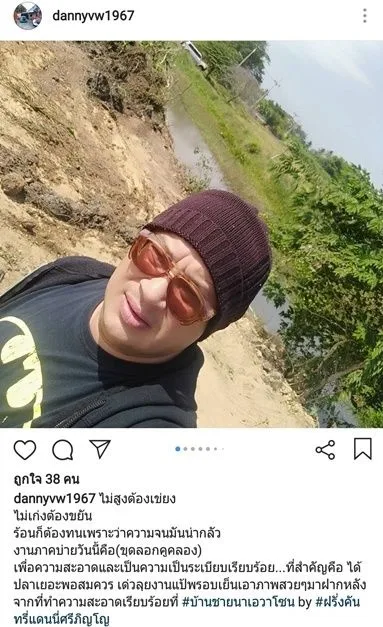 งานภาคบ่ายวันนี้คือ(ขุดลอกคูคลอง) เพื่อความสะอาดและเป็นความเป็นระเบียบเรียบร้อย…ที่สำคัญคือ ได้ปลาเยอะพอสมควร เด่วลุยงานแป้พรอบเย็นเอาภาพสวยๆมาฝากหลังจากที่ทำความสะอาดเรียบร้อยที่ #บ้านชายนาเอวาโซนby #ฝรั่งคันทรี่แดนนี่ศรีภิญโญ” ซึ่งแดนนี่เลือกใช้ชีวิตเรียบง่ายกับภรรยาและลูกสาวตัวน้อย…