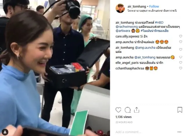 ต่อมามีผู้ใช้ไอจีชื่อ air_tomhang ได้ออกมาโพสต์คลิปพร้อมระบุข้อความว่า…. ช่วงเซอร์ไพรส์ #HBD @rachwinwong แต่มีคนแอบส่งสายตาเป็นระยะๆ @artiwara #โมเม้นน่ารักของเฮีย