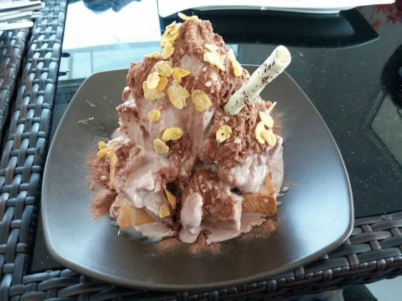 เห็นทั้ง 2 ส่วนแล้ว ตัดสินใจนั่งด้านนอกค่ะ เพราะไปช่วงเย็น แดดร่มลมตกแล้ว บรรยากาศด้านนอกดีกว่ากันเยอะเชียว ที่สำคัญแอบเห็นที่นั่งแสนเก๋ นั่งขัดสมาธิได้ด้วยยิ่งปลื้มเลย
