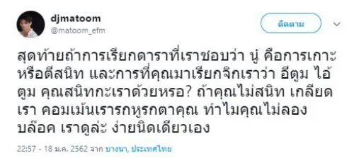 แต่ล่าสุด ดีเจมะตูม ถูกดราม่าหนัก