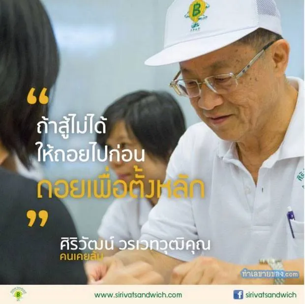 “คำสอนหนึ่งที่ได้มาจากคุณพ่อคุณแม่คือ อย่าทิ้งลูกน้อง เพราะเขาเหมือนครอบครัวเดียวกับเรา ถ้าไม่มีเขาเราก็ไม่มีวันนี้ ผมปรึกษาภรรยาว่าจะช่วยพวกเขายังไงดี ลำพังตัวคนเดียวอาจจะไปขายประกัน หรือทำบริษัทขายตรงก็ได้ แต่งานเหล่านั้นมันเลี้ยงคนไม่ได้ สุดท้ายภรรยาบอกว่า งั้นเรามาทำแซนด์วิชขายกันเถอะ” นี่คือจุดเริ่มต้นของตำนานคนสู้ชีวิตที่จะได้รับการกล่าวขานในอีกหลายสิบปีถัดมา