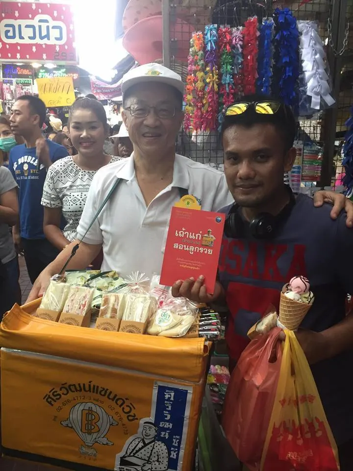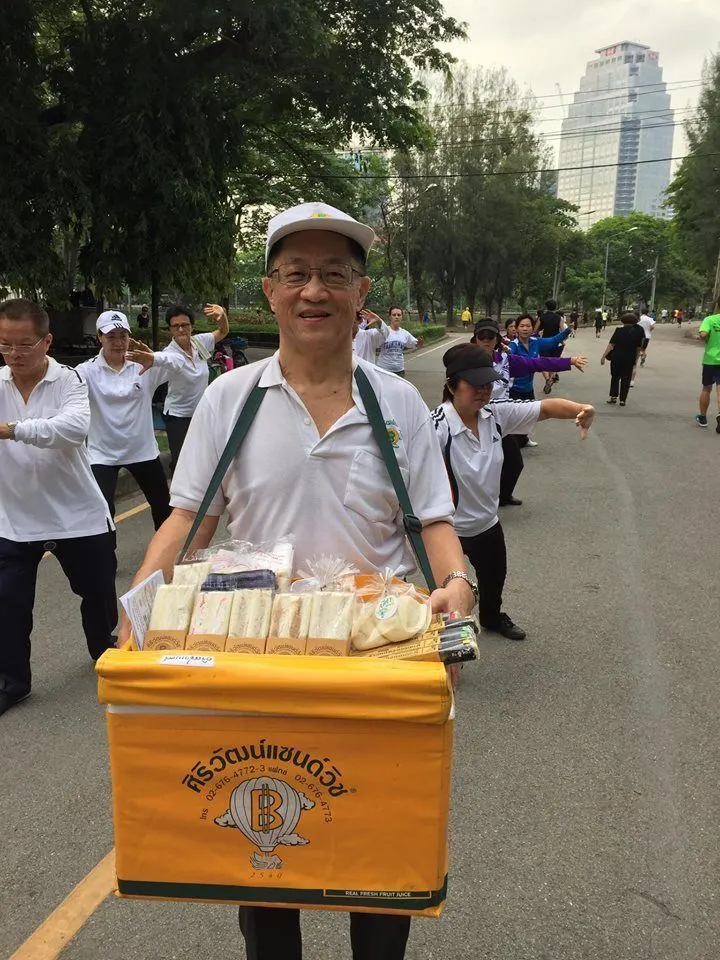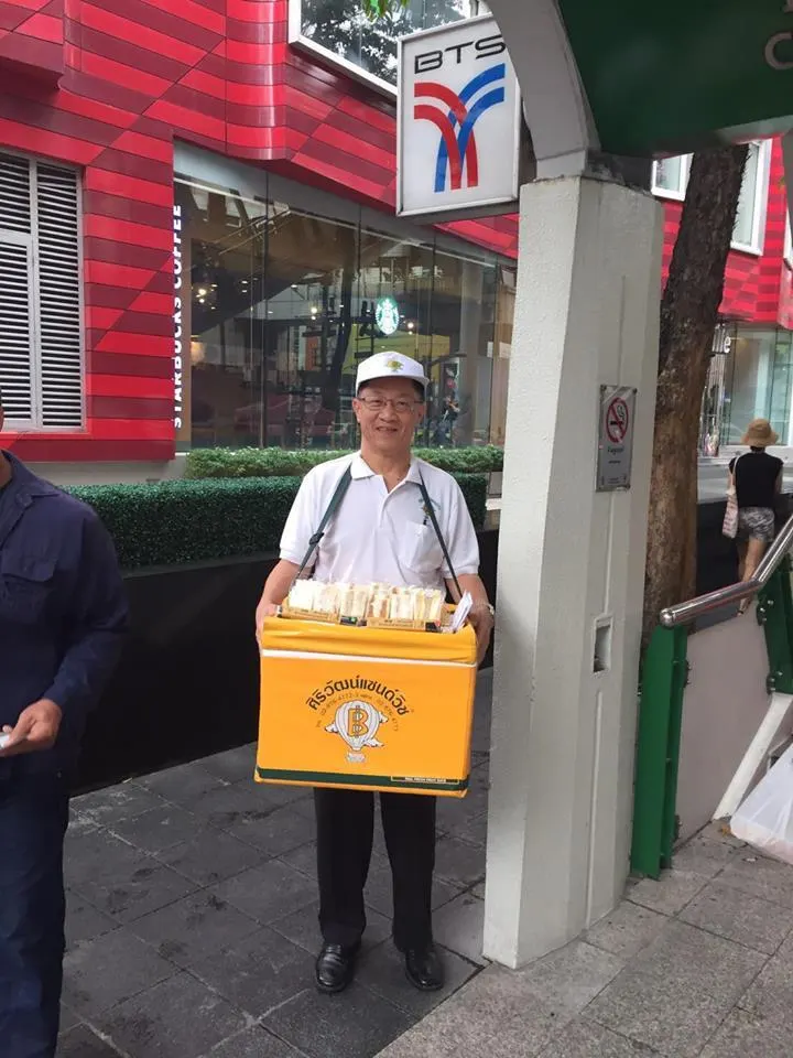 “ทุกวันนี้ยังออกไปขายอยู่นะ (หัวเราะ) แต่ไม่ได้ยืนแบกกล่องขายเองคนเดียว 4-5 ชั่วโมงแล้ว แบกไม่ไหว เดี๋ยวนี้ต้องไปกับลูกน้อง สมมติเอาไป 50 ชิ้นเหลือ 20 ชิ้น มากูแบกเอง ต่างจากสมัยก่อน 50 ชิ้น ผมแบก ลูกน้องยืน เพราะต้องเอาตัวเราเป็นจุดขาย เวลาผมไปขายลูกค้าจะเข้ามาชื่นชม ให้กำลังใจ อุดหนุนผม ถามว่าเมื่อไหร่ถึงจะหยุดออกไปเดินตามถนน ก็จนกระทั่งผมไม่ไหวแหละครับ แต่วันนี้ผมอายุ 67 ยังเดินไหวอยู่”