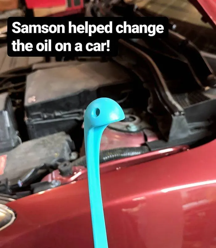 แซมสันเป็นทัพพีที่สู้งานมาก รับมือกับงานหลากหลายได้ อย่างเช่นครั้งนี้ที่เขามาช่วยเปลี่ยนน้ำมัน