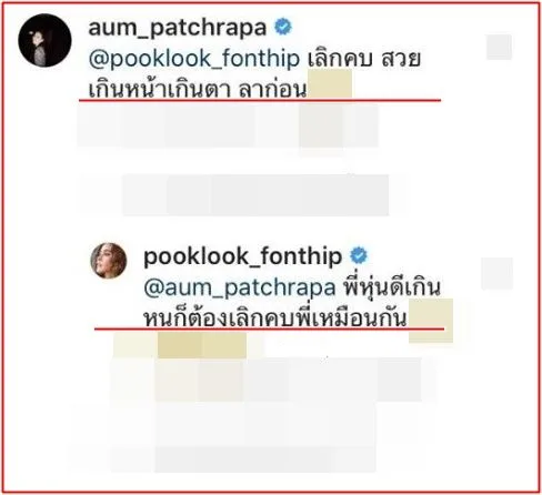 โดยอั้ม ระบุใต้รูป ของ ปุ๊กลุก ว่า… เลิกคบ สวยเกินหน้าเกินตา ไม่วายปุ๊กลุก ตอบทันควัน เลิกคบเหมือนกัน เพราะความสวยแท้ๆ