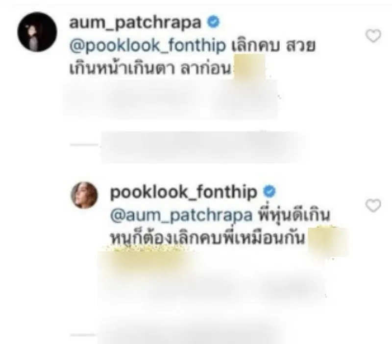 งานนี้ทำเอานางเอกรุ่นพี่อย่าง อั้ม พัชราภา ก็อดที่จะเข้ามาคอมเมนต์แซวไม่ได้ โดย สาวอั้ม คอมเมนต์แซวว่า “เลิกคบ สวยเกินหน้าเกินตา ลาก่อน” และ ปุ๊กลุก ก็ได้เข้าตอบกลับด้วยว่า “หุ่นพี่ดีเกิน หนูก็เลิกคบพี่เหกมือนกัน” แหม !!! ก็สวยพอกันทั้งคู่แหล่ะจ้าา