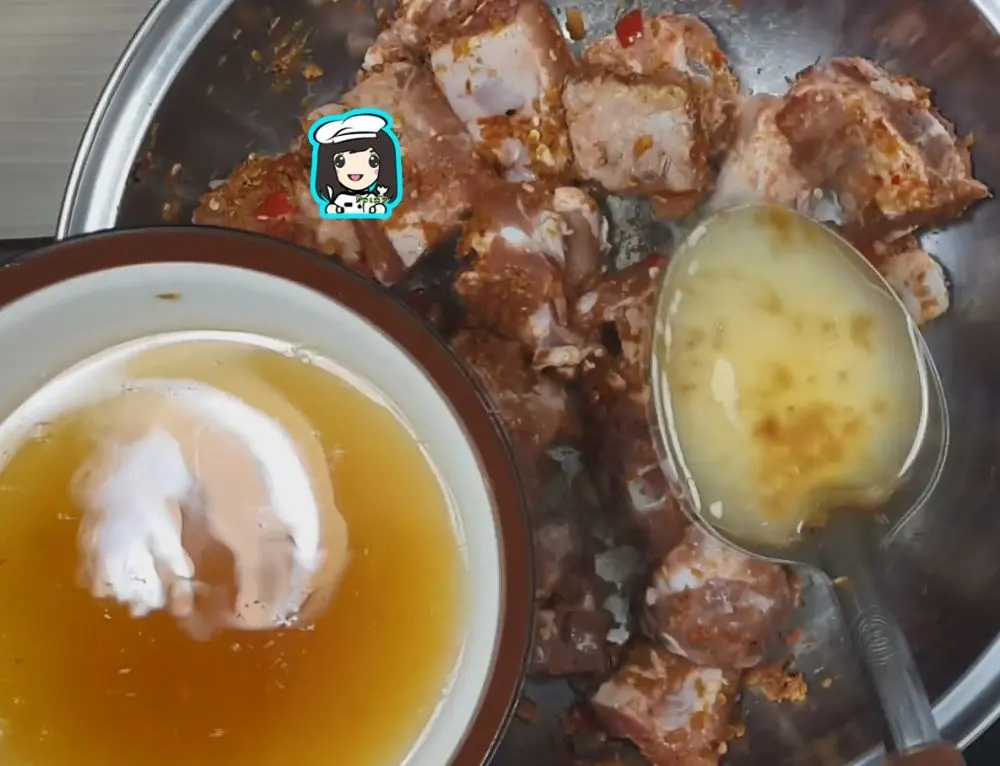 2.ล้างกระดูกหมูหั่นเป็นชิ้นพอคำล้างให้สะอาด พักให้สะเด็ดน้ำ