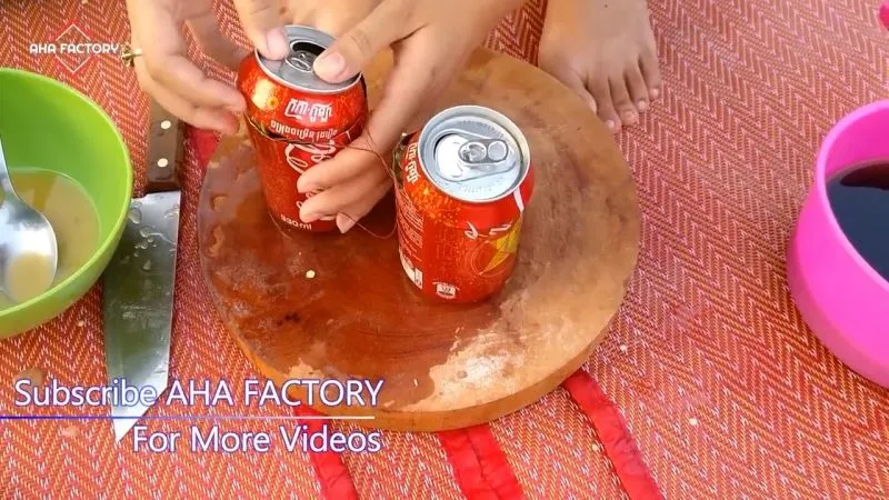 เทน้ำอัดลมออกแล้วตัดกระป๋อง(ระวังบาดมือนะ)