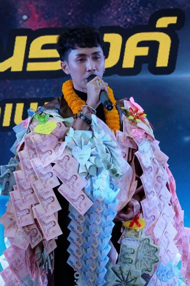 สุดยอด!! หนุ่มลูกทุ่งหล่อฮอตสุดในนาทีนี้ รับพวงมาลัยแบงค์ล้นคอ แม่ยกจัดให้