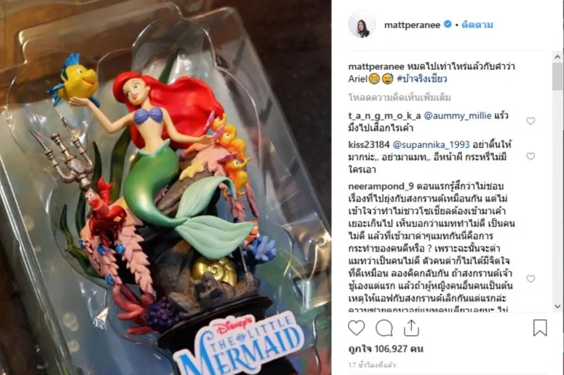 ล่าสุดในไอจีของดาราสาว แมท ภีรนีย์ @mattperanee มีความเคลื่อนไหวล่าสุด โดยแมทโพสต์ว่า หมดไปเท่าไหร่แล้วกับคำว่า Ariel???? #บ้าจริงเชียว
