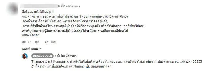 , แนะนำให้เช็คปรับปรุงในเรื่องแสงระหว่างถ่ายทำ ในขณะที่บางคนติดตลก บอกว่าสาวขวัญลงแบบขำๆ อยากให้คนเข้ามาดูเอาฮามากกว่า
