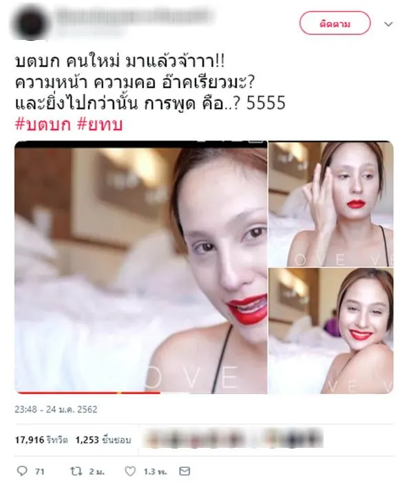 นอกจากนี้ในทวิตเตอร์ยังมีคนนำภาพการแต่งหน้าลุคนี้ของ ขวัญ อุษามณี ไปเผยแพร่และวิจารณ์ส่งต่อกัน โดยส่วนใหญ่มีความคิดเห็นตรงกันว่ารองพื้นขาวไป และควรทารองพื้นที่คอด้วย ซึ่งยอดแชร์สูงกว่า 2 หมื่นครั้งภายในไม่กี่วัน