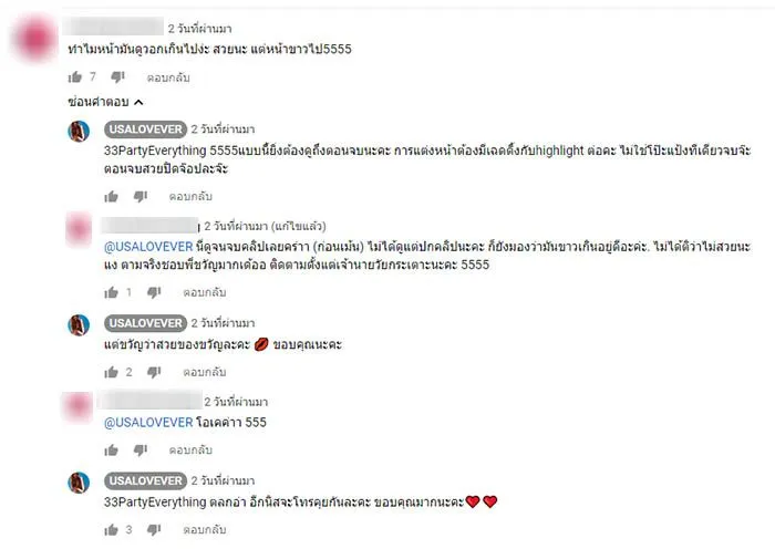 ทว่าล่าสุด (27 ม.ค.) พบว่าใต้คลิปแต่งหน้าลุค "ลิปสติกแดง" ของสาวขวัญ ถูกชาวเน็ตเข้าไปวิจารณ์เป็นจำนวนมาก เช่น รองพื้นขาวที่ใช้ขาวเกินไป ควรเลือกให้เข้ากับสีคอ , รีวิวเครื่องสำอางค์แต่ไม่เห็นสินค้าชัดเจน , สอนแต่งหน้าแทบไม่เห็น เห็นแต่กระจก , หน้าเทามาก