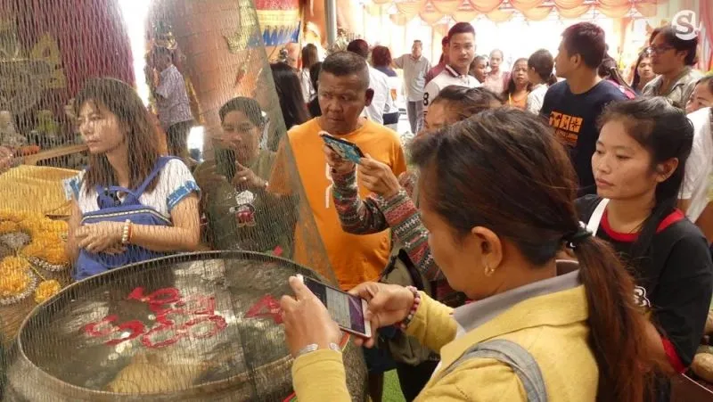 นอกจากนี้ ยังพบว่ามี ประชาชนเดินทางมาดูตัวเลขที่ลอยอยู่ในอ่างน้ำมนต์ฤๅษีเณร ซึ่งปรากฏเป็นตัวเลขจากน้ำตาเทียนสีแดง 5,8,2,3,6 และ 4 ลอยอยู่ หลายคนถ่ายภาพในหลายมุมของอ่างน้ำมนต์ หรือหมุนภาพกลับไปกลับมา เพื่อหาเลขเด็ด