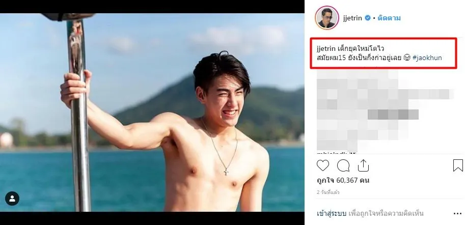 หลังจากที่นางแบบดัง เจสซี่ ได้ออกมาเปิดใจผ่านสื่อกำลังคบหาดูใจกับ เจ้าขุน ลูกชายคนกลางของ พ่อเจและแม่ปิ่น และด้วยอายุของทั้งคู่นั้นยังเด็กมาก จึงจำเป็นต้องอยู่ในสายตาของผู้ใหญ่ ล่าสุดทาง เจ เจตริน ได้ออกมาโพสต์แซวความหล่อของลูกชาย โดยเผยแคปชั่นว่า “เด็กยุคใหม่โตไว สมัยผม15 ยังเป็นกิ่งก่าอยู่เลย #jaokhun” โตไวจนมีแฟนแล้วนะจ๊ะ ตามมาชมภาพกันเลยค่ะ