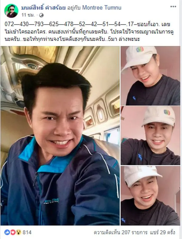 ขึ้นแท่นเป็นคนดวงเฮง หลังจากถูกหวยแทบทุกงวด สำหรับนักร้องลูกทุ่งรุ่นใหญ่ "มนต์สิทธิ์ คำสร้อย" ซึ่งเจ้าตัวมักอุดหนุนสลากกินแบ่งรัฐบาลงวดละเยอะๆ และถูกรางวัลเป็นประจำ แถมยังใบ้เลขผ่านเฟซบุ๊คส่วนตัวช่วงใกล้วันประกาศผลรางวัล ซึ่งมีไม่น้อยที่ให้เลขถูกตรงๆ และเฉียดๆ