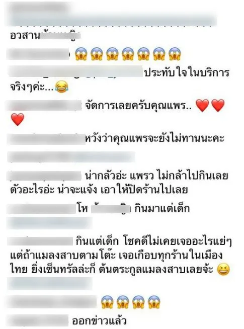 โดยทางแพร เองก็ได้ออกมาโพสต์รูปหลักฐานพร้อมแคปชั่นว่า “สั่งอาหารจาก ‘…………’ วันนี้ สาขาอโศก ได้มากกว่าที่คิด โทรไปที่ร้านผู้จัดการเถียงเสียงเเข็ง เเถมบอกให้ลองมาทานที่ร้านสิ เรื่องเกิดนอกร้านขอไม่รับผิดชอบ ประทับใจในบริการจริงๆค่ะ” ซึ่งก็มีชาวเน็ตต่างเข้ามาคอมเมนต์เป็นอย่างมาก ส่วนเรื่องการรับผิดของจะยังไงต่อไปต้องรอดูเลยค่ะ