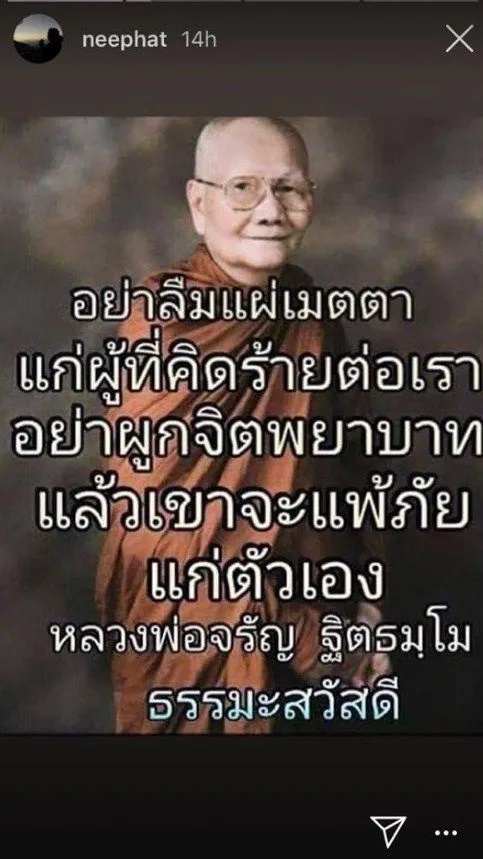 แต่จู่ๆแม่นีย์ก็ลบโพสต์ดังกล่าวทิ้งไป ชาวเน็ตเลยสงสัยว่าลบไปทำไม ล่าสุดทางแม่นีย์ก็ได้ออกมาเคลื่อนไหวอีกรอบ หลังจากที่ลบโพสต์ดังกล่าว ด้วยการโพสต์แคปชั่นต่างๆ ลงไอจีสตอรี่พร้อมกับคำคมมากมาย และยังขอบคุณคนที่เข้ามาให้กำลังใจอีกด้วย