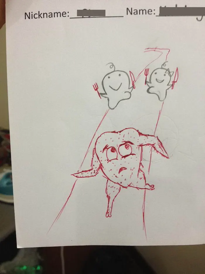 7. “มีนักเรียนใหม่ที่เพิ่งมาเข้าเรียนวิชาศิลปะ แทนที่จะปรินต์ภาพใหม่ แต่คุณครูกของเราใช้การวาดรูปเพิ่มเข้าไปแทน”