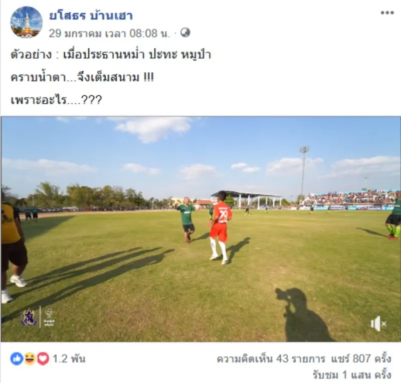 โดยเพจดังกล่าวระบุข้อความว่า ตัวอย่าง : เมื่อประธานหม่ำ ปะทะ หมูป่า คราบน้ำตา...จึงเต็มสนาม !!! เพราะอะไร....???