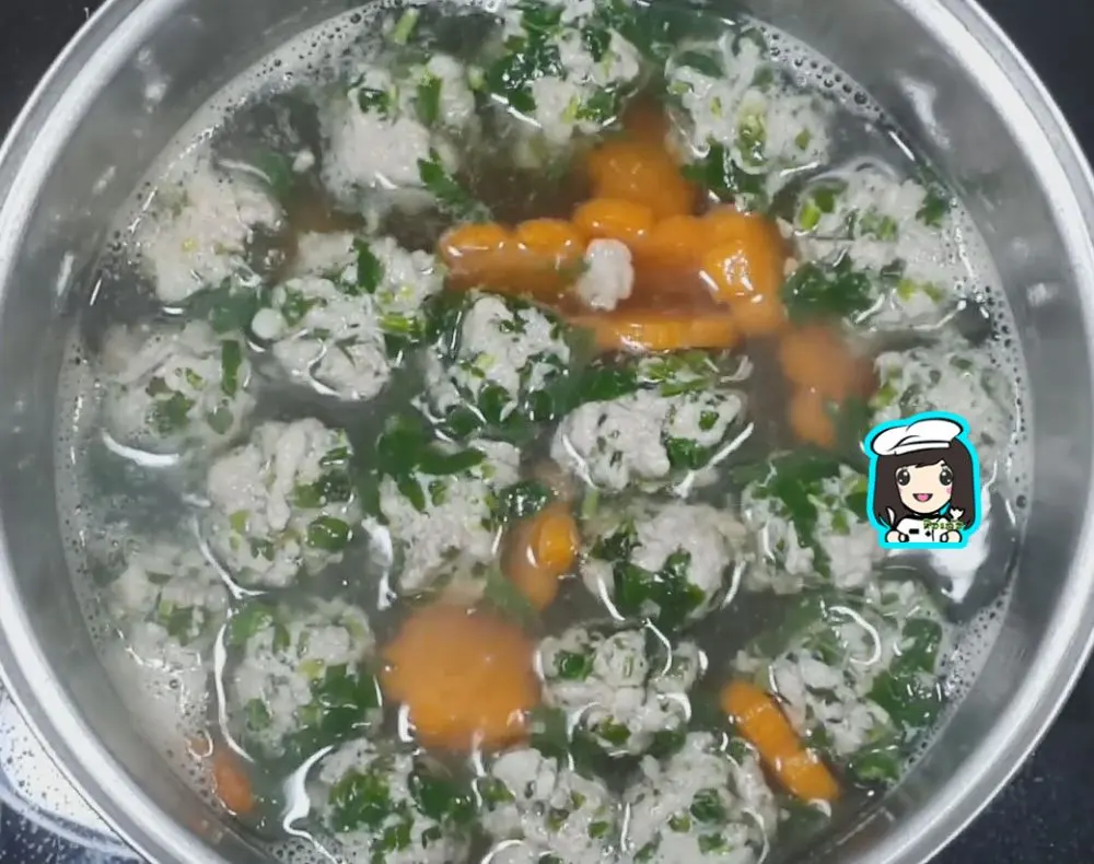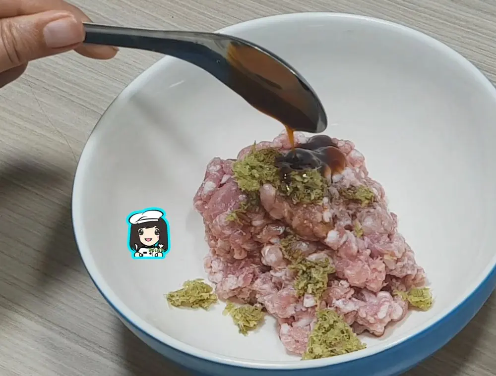 ปั้นหมูสับเป็นก้อนพอดีคำใส่ลงในน้ำร้อนจนหมด