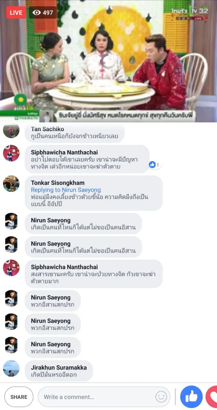 5 ก.พ 62 เกิดดราม่าร้อนแรงทำเอาคนอีสานเดือดไปตามๆกัน ในช่วงระหว่างไลฟ์สดรายการดัง ผู้ใช้เฟซบุ๊คชื่อ “Nirun Saeyong” ที่ไปตำหนิเกี่ยวกับคนอีสานจนสร้างความไม่พอใจอย่างกว้างขวาง นอกจากนั้นยังมีผู้ร่วมชมรายการดัง เข้ามาร่วมแสดงความคิดเห็นจำนวนมาก ระบุว่า