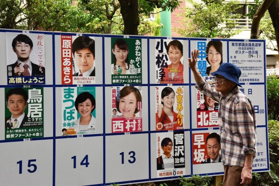 ป้ายหาเสียงของพรรคการเมืองแบบไม่ขวางทางใครในญี่ปุ่น