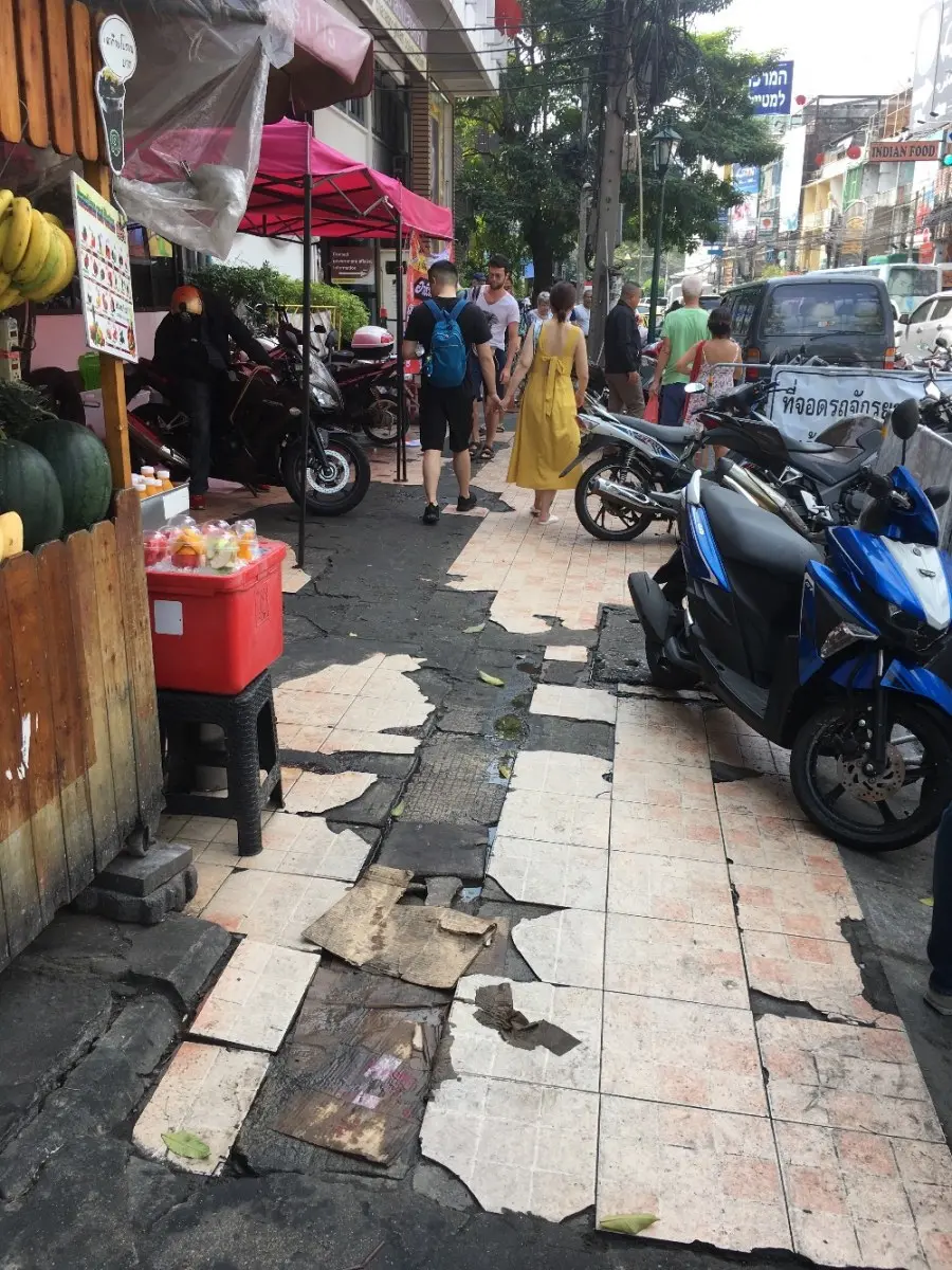 ทางเท้าหน้า สน ชนะสงคราม บริเวณถนนข้าวสาร
