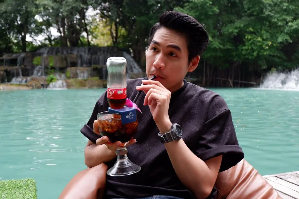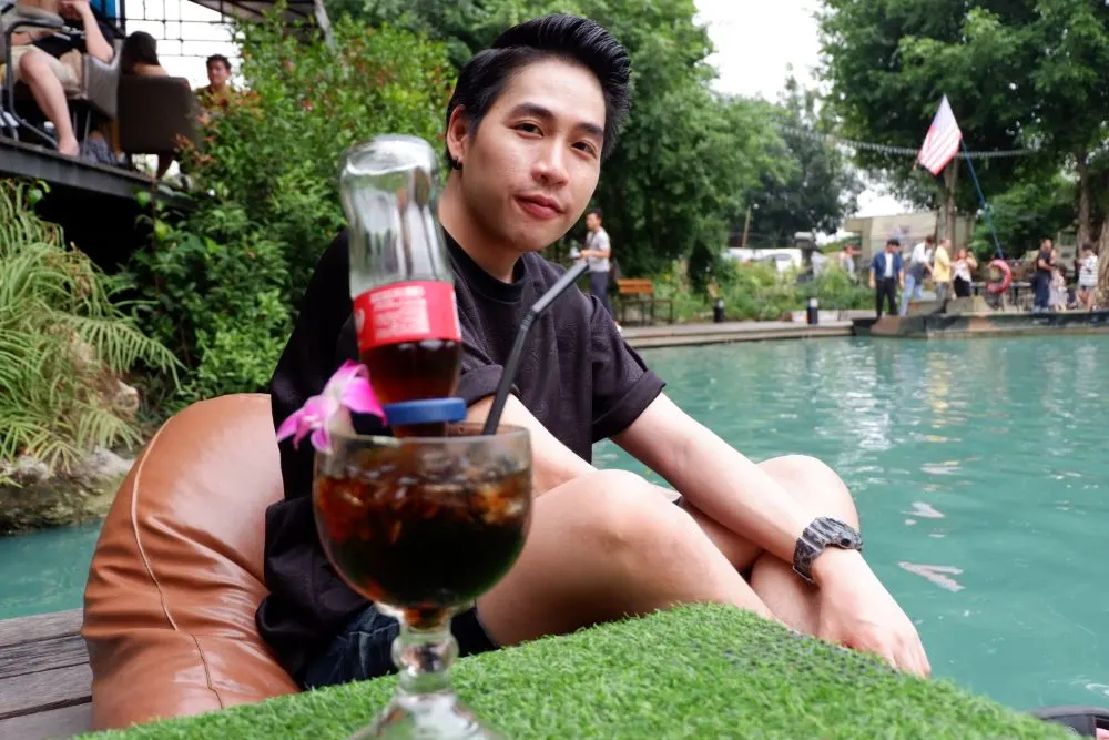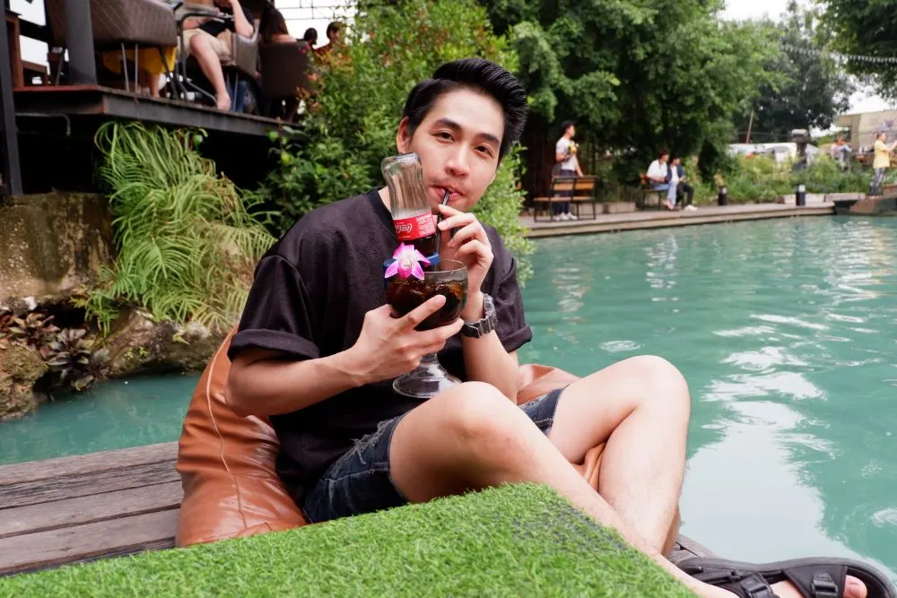 ร้านนี้เด็ดตรงบรรยากาศร้าน น้ำตกสวยๆ สีเขียวมรกต น่าจะเกิดจากการเติมสารเคมีให้มันดีเขียวๆนะ