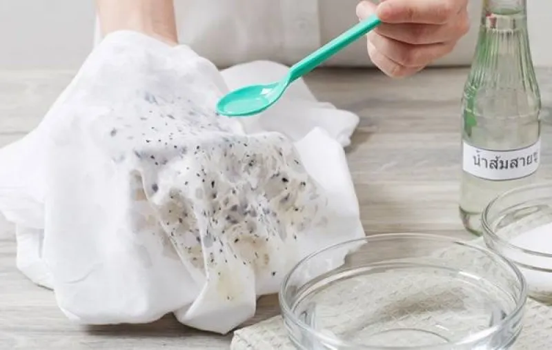 นอกจากจะกำจัดเชื้อราได้แล้ว ยังซักกลิ่นเหม็นอับออกได้ด้วย ซึ่งขั้นตอนนั้นก็เริ่มจากผสมน้ำส้มสายชู ประมาณ 1-2 ถ้วยตวง เข้ากับน้ำยาซักผ้าหรือผงซักฟอก เสร็จแล้วก็นำไปซักและตากให้แห้ง แต่ถ้าหากคราบราฝังแน่นเป็นวงกว้าง แนะนำให้แช่ผ้าทิ้งไว้ในน้ำส้มสายชูอย่างน้อย 1 ชั่วโมง ก่อนซัก