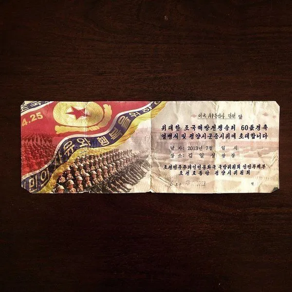 บัตรคำเชิญเข้าร่วมงานรำลึกถึงวันครบรอบ 60 ปีของสงครามเกาหลีมีแสดงขบวนพาเหรดทหารจัดขึ้นเมื่อวันที่ 27 กรกฎาคม 2013