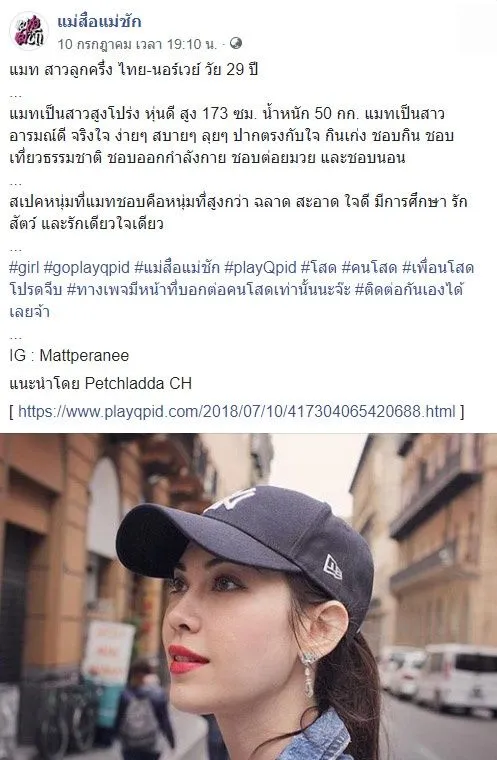 “มีบ้างค่ะแต่ว่าแมทว่าเขาอาจจะไม่เข้าใจมันแค่ขำๆมีแบบโทรมาจริงจังแต่แมทไม่ได้ให้ช่องทางติดต่อไปแค่ลงไอจีไว้พอเป็นสังเขปเฉยๆแต่ว่าเขาโทรศัพท์มาเบอร์แม่ซึ่งเป็นเบอร์รับงานในไอจีว่าขอสมัครรับเป็นแฟนมั้ยก็ปฏิเสธไปแล้วก็โดนแม่ว่าตามระเบียบว่าเล่นอะไรไม่รู้เรื่องคือเราก็ไม่ได้ลงอะไรจริงจังคือลงมั่วซั่วมากเรื่อยเปื่อยมากคือเพื่อนเป็นคนเขียนให้”