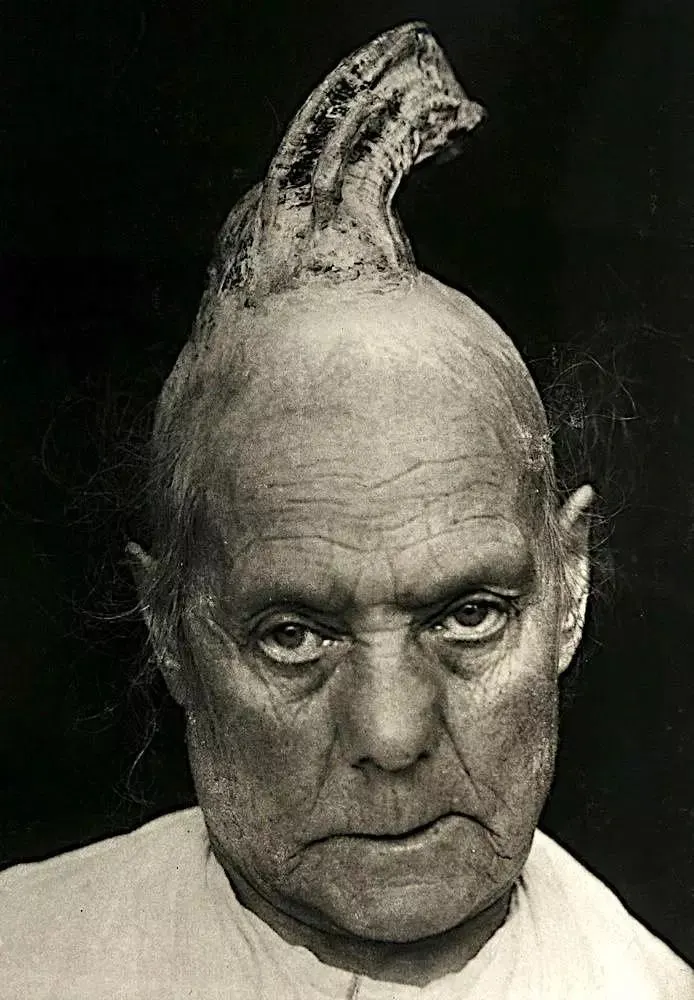 นี่คือภาพของผู้ป่วยสูงอายุที่มีเขาโผล่ขึ้นมาจากหนังศีรษะ