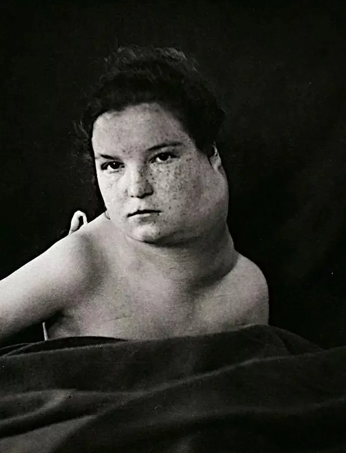 ภาพของเด็กหญิงที่ต้องทุกข์ทรมานจาก ไฝเมลาโนไซต์ หรือ ไฝมีสี (Melanocytic Nevus) ซึ่งปรากฎในยุค 1890 ผิวหนังที่มีสีเข้มหรือมีขนดกมักจะมีการเติบโตต่อไปเมื่อเด็กโตขึ้น