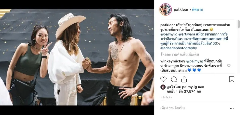 เค้ากำลังคุยกันอยู่ เราอยากจะขอถ่ายรูปด้วยก็เกรงใจ ก็เอางี้แหละเนอะ @palmy.ig @artiwara #มี่สวยมากกกกกกร้องเว่าอีสานก็เพราะมากพีคคคคคคคคคคคค #พี่ตูนผู้ที่ร่างกายเป็นกล้ามเนื้อล้วนลีน 100%”
