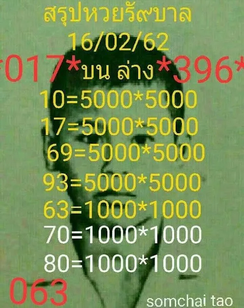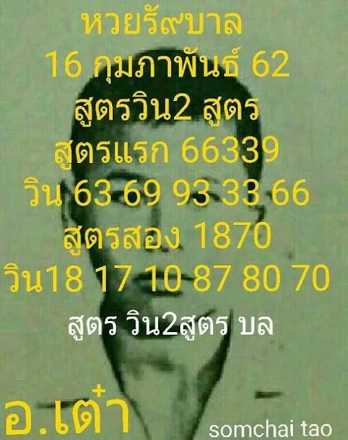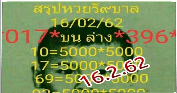 ชุดเต็ม สรุปหวยรัฐบาล อ.เต๋า งวดวันที่ 16/2/62