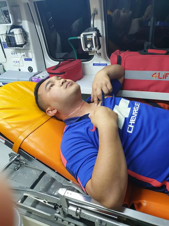10.30 พาพี่อ๋องมาทำแผล อาการดีขึ้น ยังมีปวดที่แผลบ้าง และไปที่จุดเกิดเหตุ เจ้าหน้าที่ 3BBส่งคนมาดูและ แจ้งว่าไม่ใช่สายของเค้า