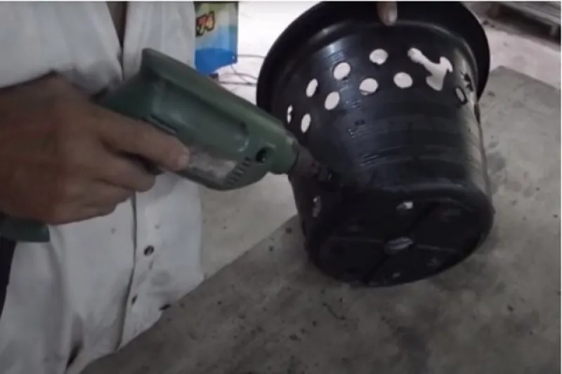 1. เจาะรูที่กระถางให้เป็นรูกลม ขนาดเส้นผ่านศูนย์กลาง 25 มม.