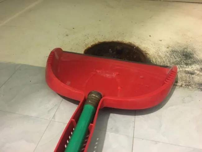 11 เมื่อมีน้ำไหลออกมาจากฮีทเตอร์นิดๆ เราจึงใช้ที่โกยผงรองน้ำซะเลย
