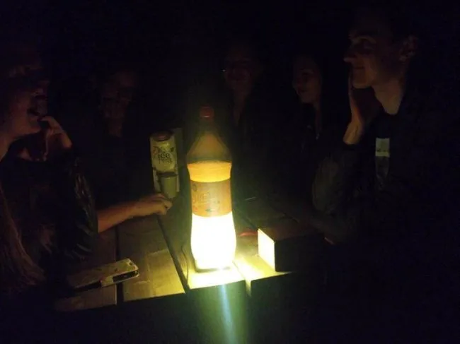 12 ขวดโซดา + ไฟฉายโทรศัพท์มือถือ = แสงอ่อนๆ