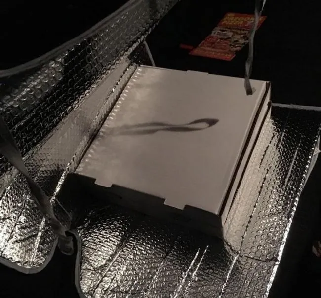 10 ซื้อพิซซ่ามาแต่จะทำยังไงให้มันร้อนอยู่จนกว่าจะถึงบ้าน ก็ใช้ที่บังแดดแบบฟอยล์ห่อมันซะเลย