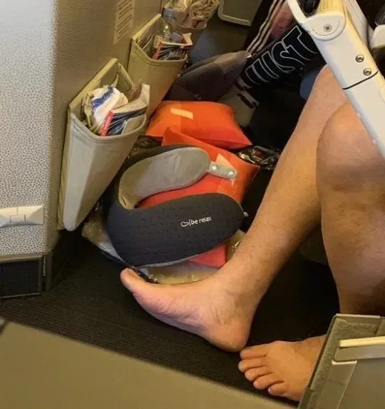 เว็บไซต์ metro.co.uk ได้นำเสนอเรื่องราวจาก Lizzie Thompson หนึ่งในผู้โดยสารที่อาจเลือกที่นั่งที่แย่ที่สุดในเที่ยวบินของเธอ เมื่อชายคนหนึ่งซึ่งนั่งบนที่นั่งฝั่งตรงข้ามของทางเดินตัดสินใจได้ตัดสินใจที่จะทำให้ช่วงเวลาแห่งการเดินทางอันยาวนานสะดวกสบายขึ้น โดยเขาเริ่มถอดกางเกงและถุงเท้าออก...