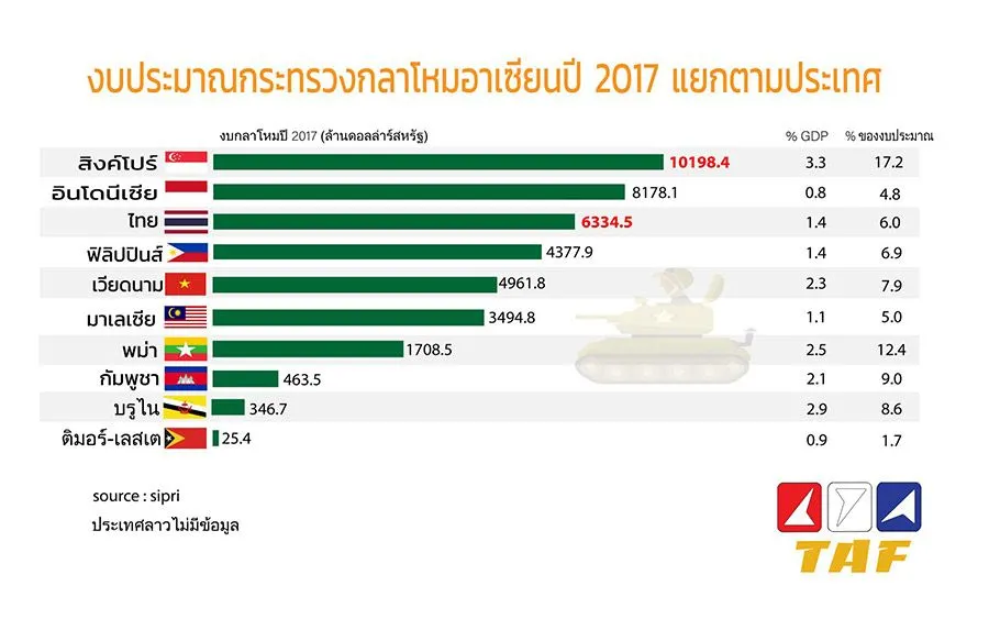 เปิดงบฯ กระทรวงกลาโหมอาเซียน 10 อันดับ ไทยติด 1 ใน 3 !