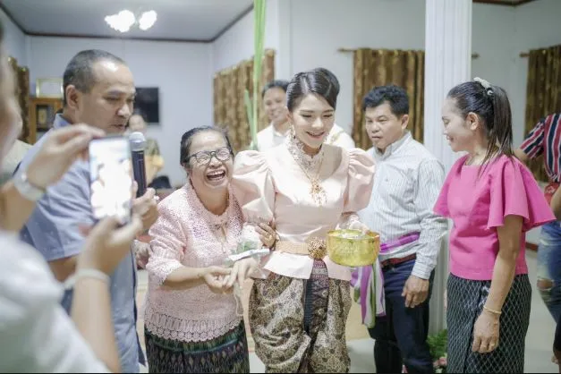 น้องเบลพูดถึงเจ้าบ่าวว่า ผู้ชายคนนี้ ถามพ่อกับแม่นู๋ว่า ผมจะแต่งงานกับเบลคับ ผมพร้อมสร้างครอบครัวแล้วครับ พ่อกับแม่อยากได้ค่าดองท่อใด๋คับ พ่อกับแม่หัวเราะ แล้วบอกพี่ก้องว่าก็แล้วแต่ลูกสิให้เลย ว่าแต่ฮักเบลคนเดียว ขั้นเซาฮักกะเอามาส่งคืน ขอแค่อย่าตีอย่าฆ่ากะพอเด้อลูก พ่อกับแม่จะบอกเสม คู่ชีวิตต้องให้อภัย และซื่อสัตย์ และเขา คือคนที่นู๋เลือก ปู่ ย่า เลือก นู๋ก็พร้อมที่จะเคียงข้างเขา ไม่ว่าเขาจะพาอะไร จะต้องเคียงข้างเขารักกันเมื่อยังหายใจดีกว่านะคะ