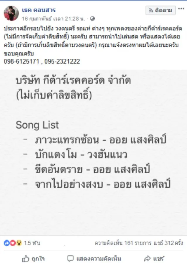 ต้องบอกเลยว่าเป็นอีกหนึ่งเพลงที่กำลังฮอตฮิตสุดๆ สำหรับเพลง บักแตงโม ที่ต้องบอกเลยว่าคนร้องตามได้ทั้วบ้านทั่วเมื่อเลยจ้า แถมมีนางเองเอ็มวีสวยสุดๆ ล่าสุดทำเอาหลายๆคน ที่นำเพลงนี้ไปใช้ร้องทำมาหากิน เฮดีใจหนักมาก เมื่อ อ.เธค ได้ ออกมาประกาศลงเฟสบุ๊คว่า ประกาศอีกรอบไปยัง วงดนตรี รถแห่ ต่างๆ ทุกเพลงของค่ายกีต้าร์เรคคอร์ด (ไม่มีการจัดเก็บค่าลิขสิทธิ์) นะครับ สามารถนำไปเล่นสด หรือแสดงได้เลยครับ (ถ้ามีการเก็บลิขสิทธิ์ตามวงดนตรี) กรุณาแจ้งตรงหาผมได้เลยนะครับ ขอบคุณครับ